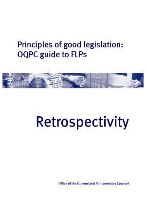 The Principles of good legislation: OQPC guide to FLPs is a resource being prepared by OQPC and progressively published as separate chapters. The guide includes information about fundamental legislative principles and the application of those principles in Queensland legislation. The guide is intended to help departmental policy officers and others involved in developing legislation.